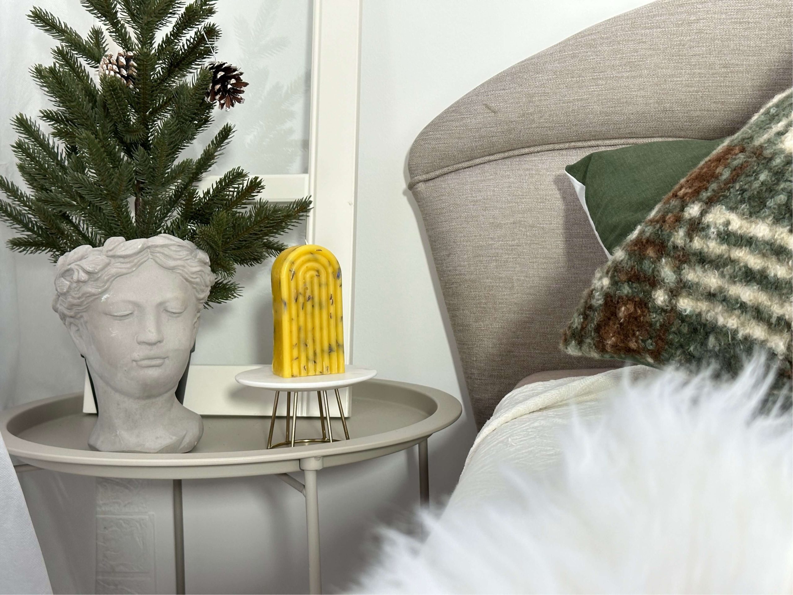 Sastāvs: 100% Latvijas bišu vasks, organiskās kaņepes dakts, Latvijas Lavandas un Piparmētras ēteriskā eļļa.