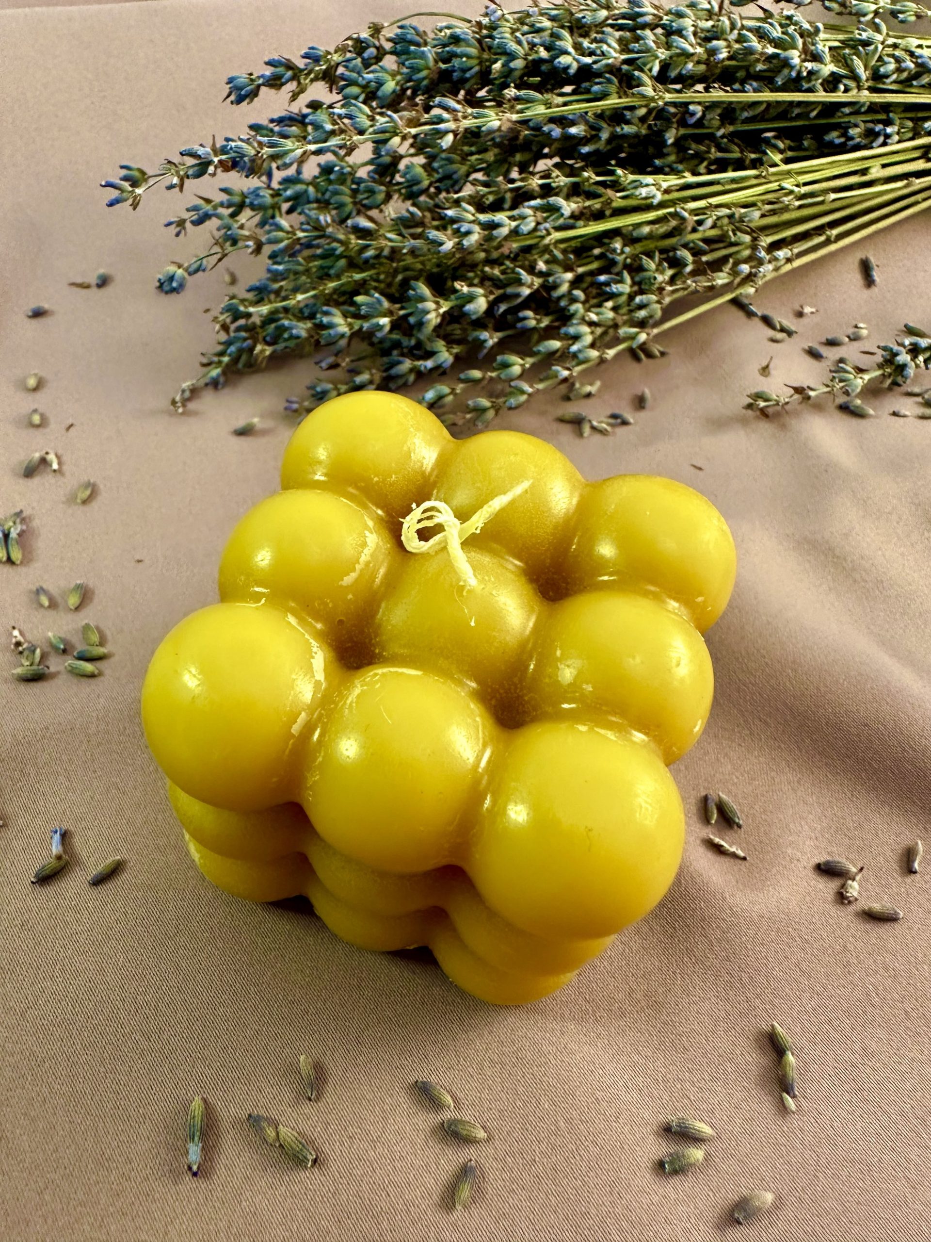 Aicinām Jūs atslēgties no ikdienas, steigas un būrzmas ar OW Sveci “Burbuļu kubs”, brīvajā brīdī, ļauties piedzīvot maģisko “Ziedošās pļavas svaiguma” aromātu virpuli, kas pārnesīs Jūsu prātu mierīgā un iedvesmojošā vidē uz Latvijas provansas laukiem, kur saldi smaržo medus ar propolisa notīm, kas atvieglo elpceļus un viss apkārt nomierinošais Lavandas krūmiņu aromāts. Kamēr uzmundrinošās Piparmētras svaigās notis uzlādē ar enerģiju un uzlabos koncentrācijas spējas. Kamēr Jūsu telpā bišu vaska dabīgās eļļas jonizē un attīra gaisu no nepatīkamiem aromātiem, putekļiem un baktērijām. Dabas dziednieciskais spēks ir tas, kas vajadzīgs, lai atgrieztu spēkus, iedvesmotos un atslābināties.